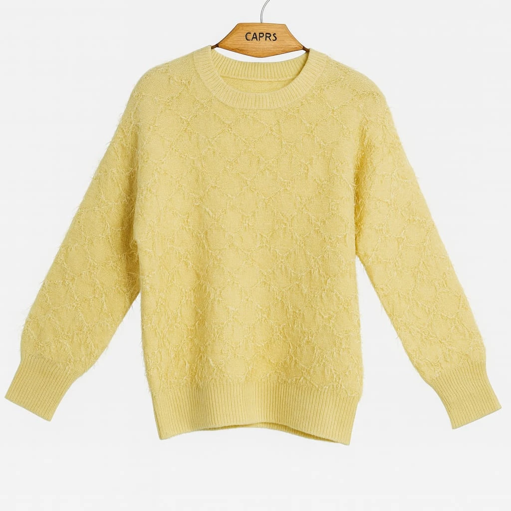 بلوفر نسائي ناعم مصنوع من مزيج فاخر من الصوف بنسبة 60% والقطن بنسبة 40%، يمنح دفئًا مريحًا وملمسًا ناعمًا على البشرة.