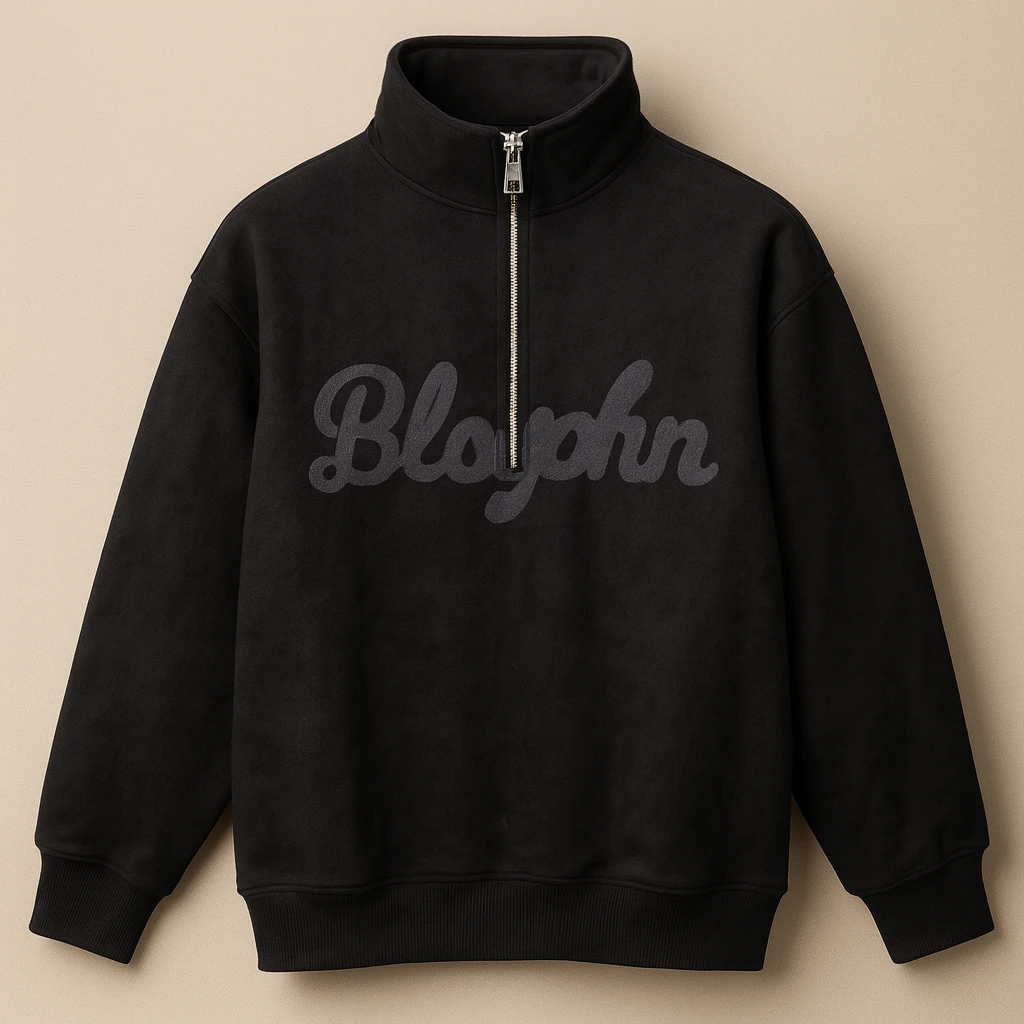 يأتي بياقة مرتفعة وسحاب نصفي يضيف لمسة عملية ومميزة، مع كتابة بارزة بلون رمادي داكن على الصدر تضفي طابعًا عصريًا جذابًا.
