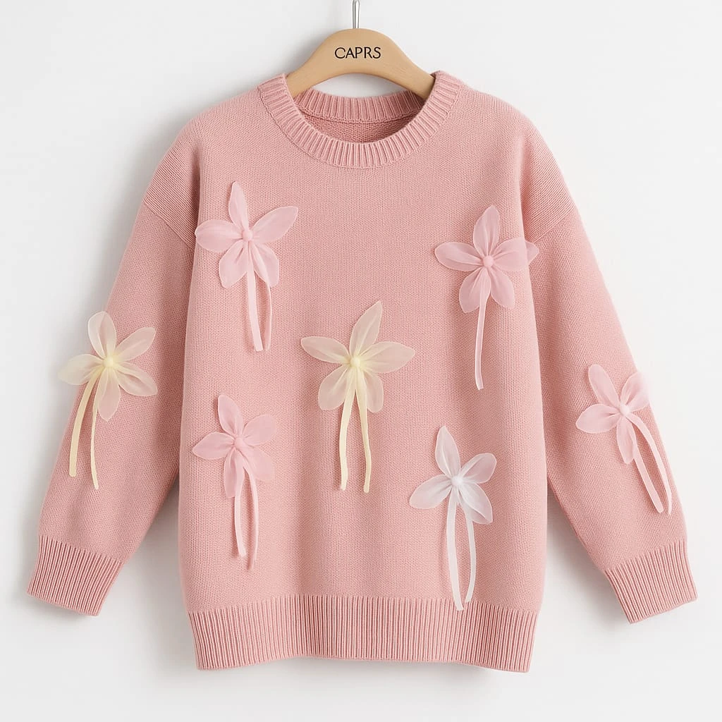 بلوفر نسائي ناعم من الصوف عالي الجودة باللون الوردي الباستيل، يتميّز بتصميم أنثوي جذّاب مزدان بزهور من الشيفون بألوان ناعمة تمنح إطلالة رومانسية دافئة. يجمع بين الدفء والراحة مع لمسة فنية تضيف أناقة فريدة لمظهرك الشتوي.