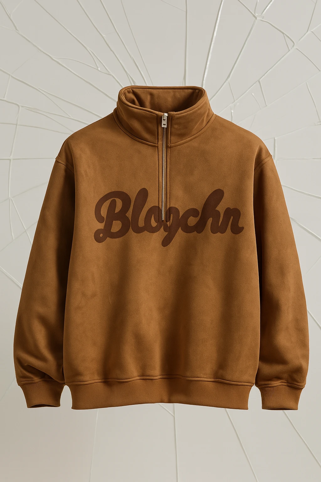 بلوفر شتوي أنيق بلون بني كراميل دافئ، بتصميم عصري بياقة مرتفعة وسحاب نصفي لإطلالة مريحة وسهلة الارتداء.