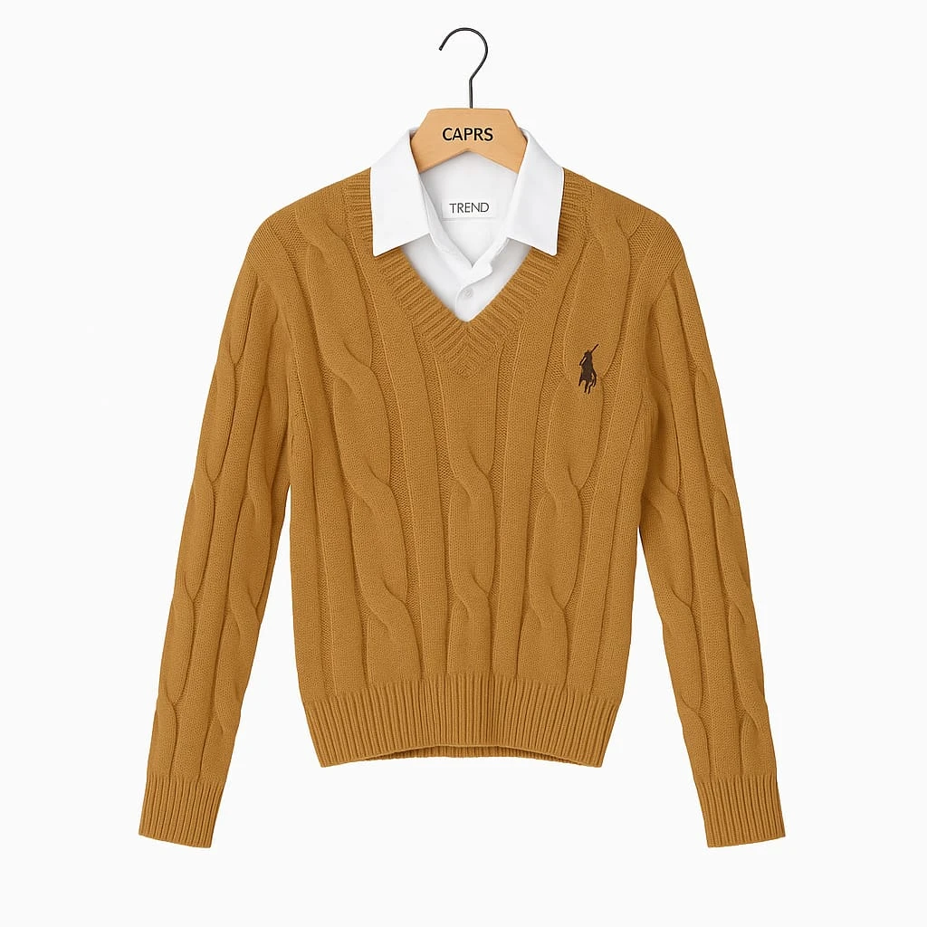 بلوزة بولو نسائية أنيقة بلون كامل (كميل بيج) مصنوعة من مزيج فاخر يحتوي على ٦٠٪ صوف يمنح دفئًا وملمسًا ناعمًا ومريحًا.