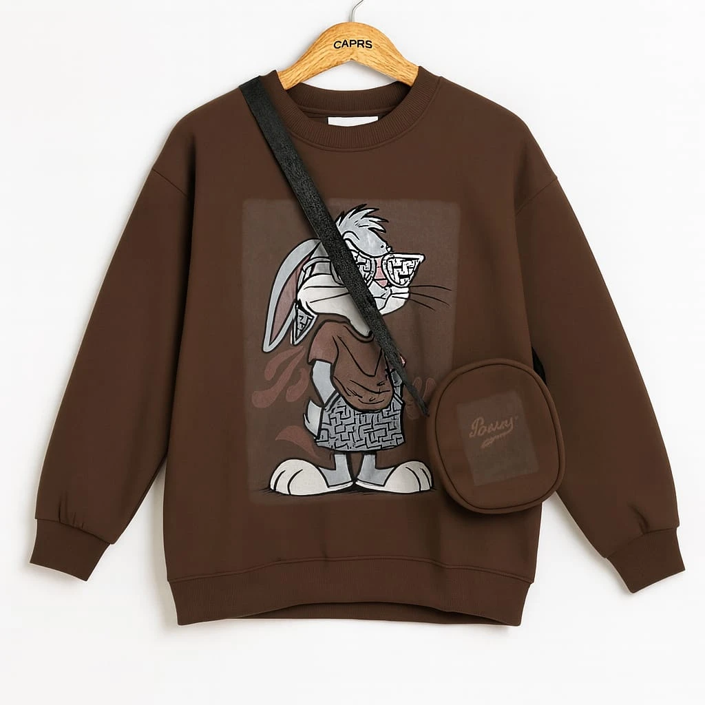 بلوزة بلون بني أنيق بتصميم كرتوني شبابي تمنحك إطلالة عصرية ومريحة.