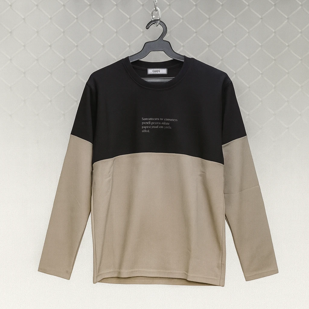 بلوزة رجالية أنيقة بتصميم عصري بلونين، الجزء العلوي باللون الأسود والسفلي باللون البيج. مصنوعة من قماش قطني ناعم عالي الجودة يمنحك راحة مثالية طوال اليوم. تتميّز بطباعة بسيطة في المنتصف تضيف لمسة شبابية جذّابة، مع أكمام طويلة مناسبة للأجواء المعتدلة. مثالية للإطلالات اليومية والكاجوال الراقية.