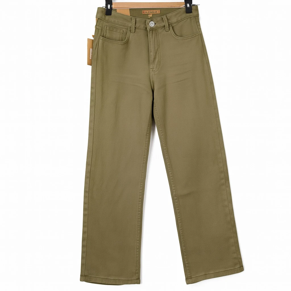 بنطال نسائي أنيق مصنوع من قماش قطني ناعم وعالي الجودة بلون زيتي مميز. يتميز بتصميم مستقيم الساق، وخياطة متقنة تمنح مظهراً عصرياً ومريحاً في الوقت نفسه. مناسب للإطلالات اليومية أو الكاجوال الأنيقة، ويمكن تنسيقه بسهولة مع القمصان أو البلوزات لمظهر متكامل.