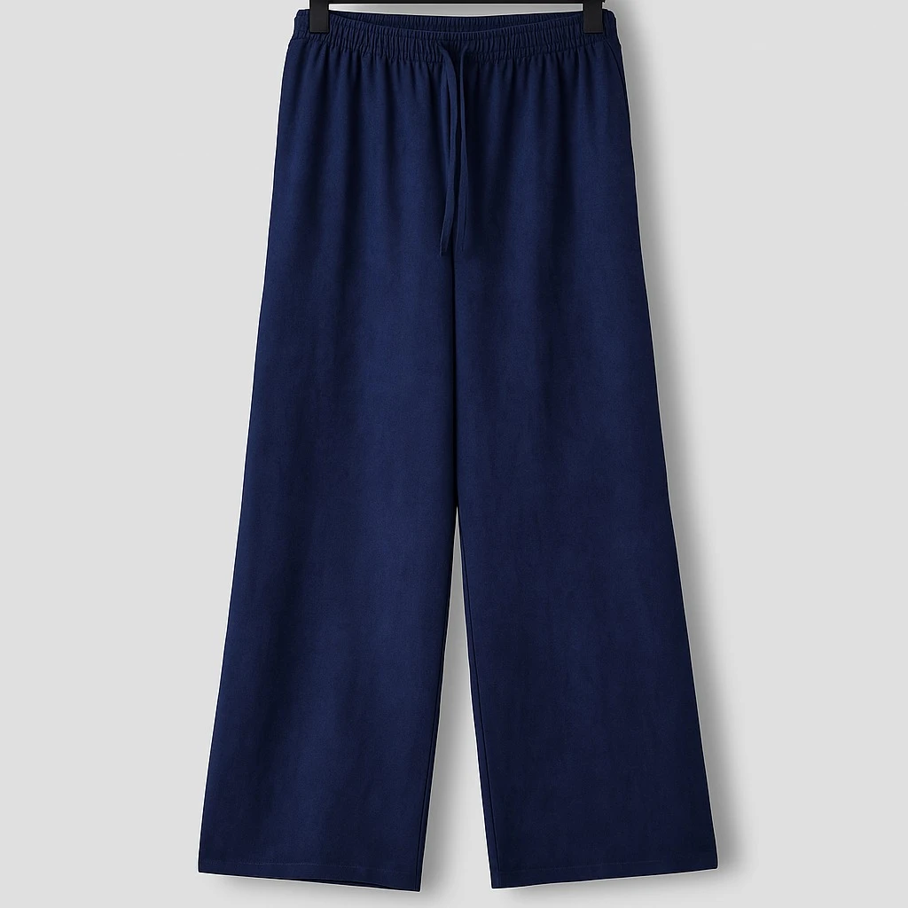 بنطال نسائي واسع بلون كحلي أنيق، مصنوع من قماش ناعم وخفيف يمنح إحساسًا بالراحة طوال اليوم. يتميز بتصميم خصر مطاطي مع رباط لتعديل المقاس، مما يجعله مثالياً للإطلالات اليومية المريحة أو الكاجوال الأنيقة. يمكن تنسيقه بسهولة مع القمصان أو البلوزات لمظهر عصري ومريح.