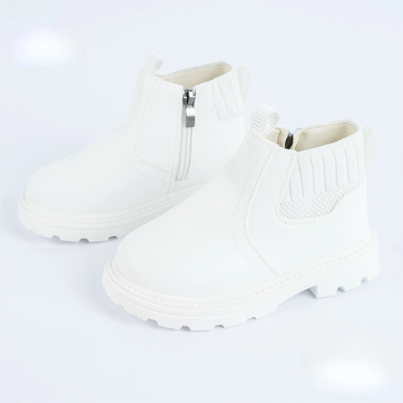 بوت أبيض للأطفال بتصميم عصري مريح وسهل الارتداء، يمنح مظهراً جذاباً يناسب الإطلالات اليومية والمناسبات الخاصة.