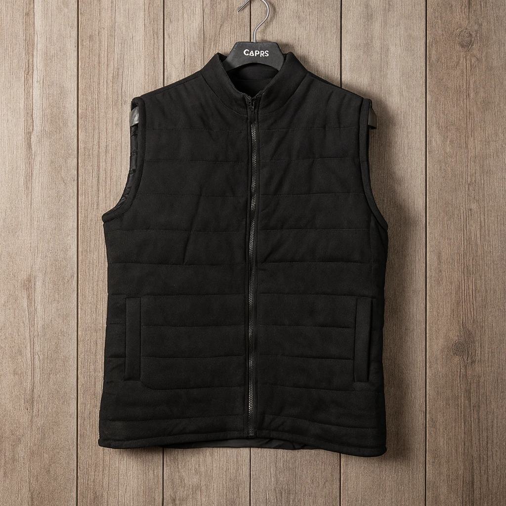 فيست رجالي أنيق باللون الأسود، مصنوع من خامة مبطنة عالية الجودة توفر الدفء والراحة في الأجواء الباردة. يتميّز بتصميم بسيط وعصري بسحاب أمامي وجيوب جانبية عملية، مما يجعله خيارًا مثاليًا للإطلالات الكاجوال واليومية الأنيقة.