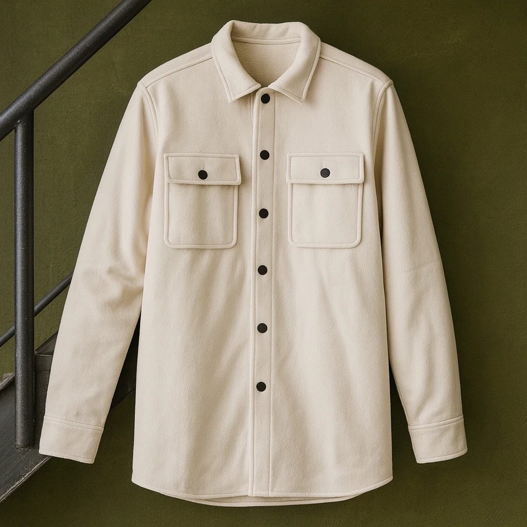جاكيت مبطن أنيق بلون بيج فاتح يجمع بين البساطة والفخامة في تصميم واحد. مصنوع من خامة ناعمة ودافئة تمنحك شعوراً مريحاً في الأجواء الباردة، مع بطانة داخلية خفيفة توفر دفئاً دون أن تثقل المظهر. يتميز بأزرار أمامية سوداء تضيف لمسة عصرية متناسقة، وجيبين أماميين كبيرين بغطاء يبرزان الطابع الكلاسيكي الأنيق. يمكن ارتداؤه كطبقة خارجية فوق تيشيرت أو كنزة لإطلالة راقية وكاجوال في الخريف والشتاء.
