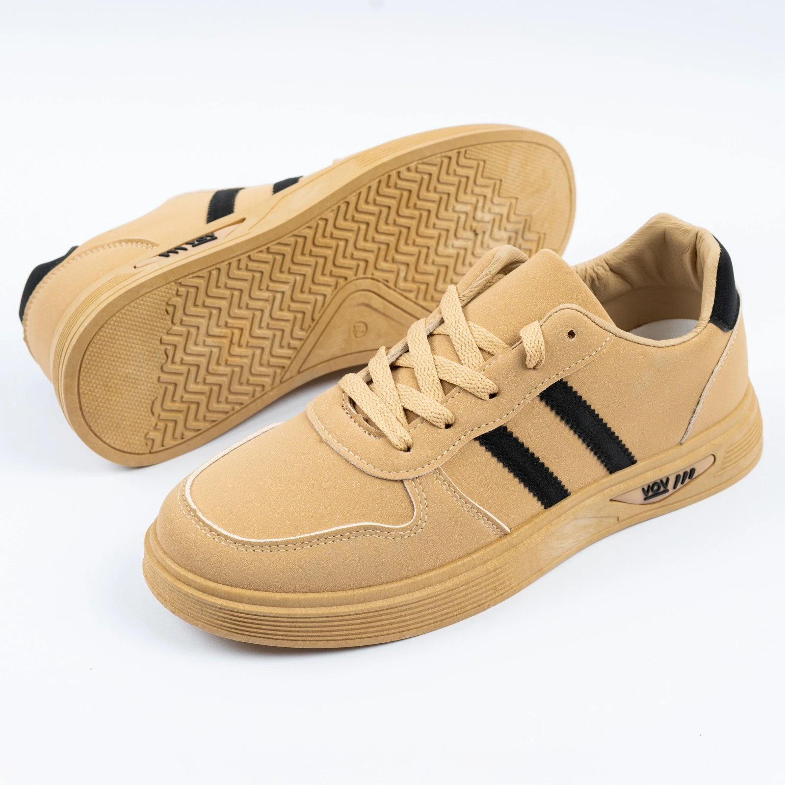 حذاء شبابي أنيق باللون البيج بتصميم عصري يناسب الإطلالات اليومية. يتميز بخطوط جانبية سوداء تضيف لمسة جريئة، مع خامة مريحة ونعل متين مضاد للانزلاق لضمان ثبات وراحة طوال اليوم. خيار مثالي لإطلالة عصرية تجمع بين الأناقة والراحة