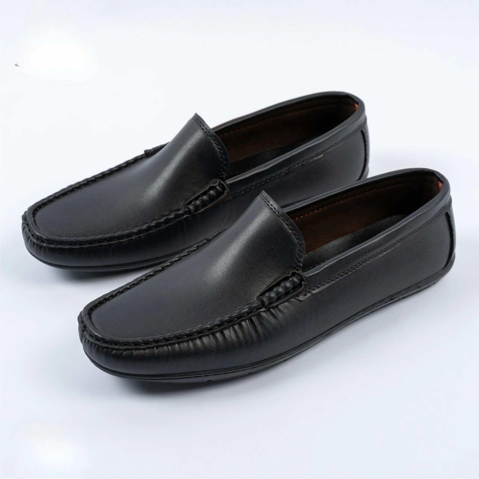حذاء رجالي كلاسيكي باللون الأسود مصنوع من الجلد الفاخر بتصميم انزلاقي أنيق. يتميز بخياطة دقيقة ولمسة لامعة تضيف مظهراً راقياً يناسب الإطلالات الرسمية واليومية. نعل مرن ومريح يمنح ثباتاً وراحة طوال اليوم
