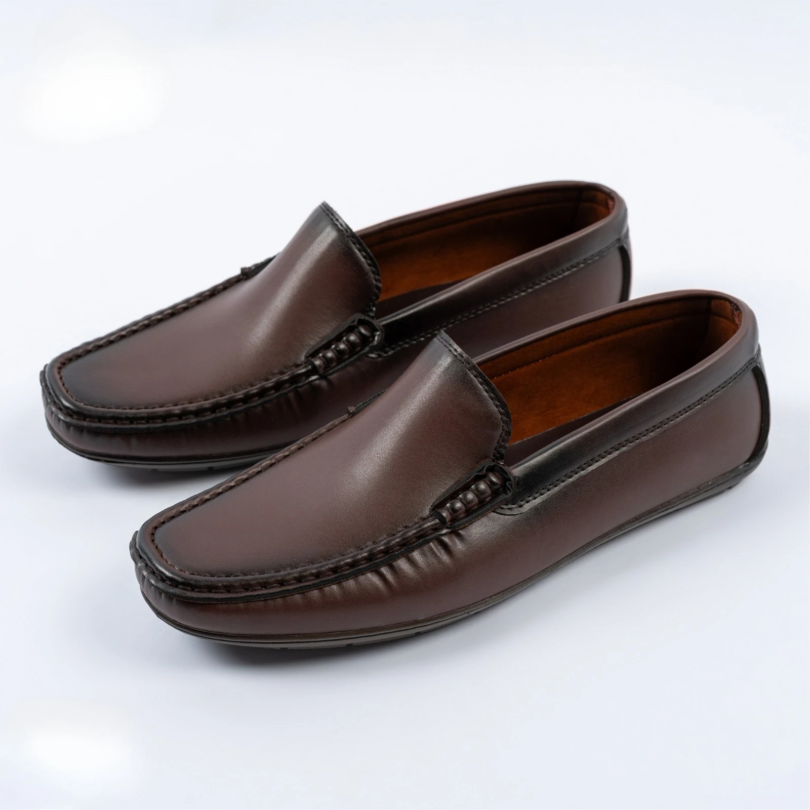 حذاء رجالي أنيق مصنوع من الجلد البني الفاخر، بتصميم انزلاقي مريح وسهل الارتداء. يتميز بخياطة متقنة ولمسة لامعة تضيف مظهراً راقياً يناسب الإطلالات الرسمية واليومية. نعل مرن يضمن راحة القدم طوال اليوم.