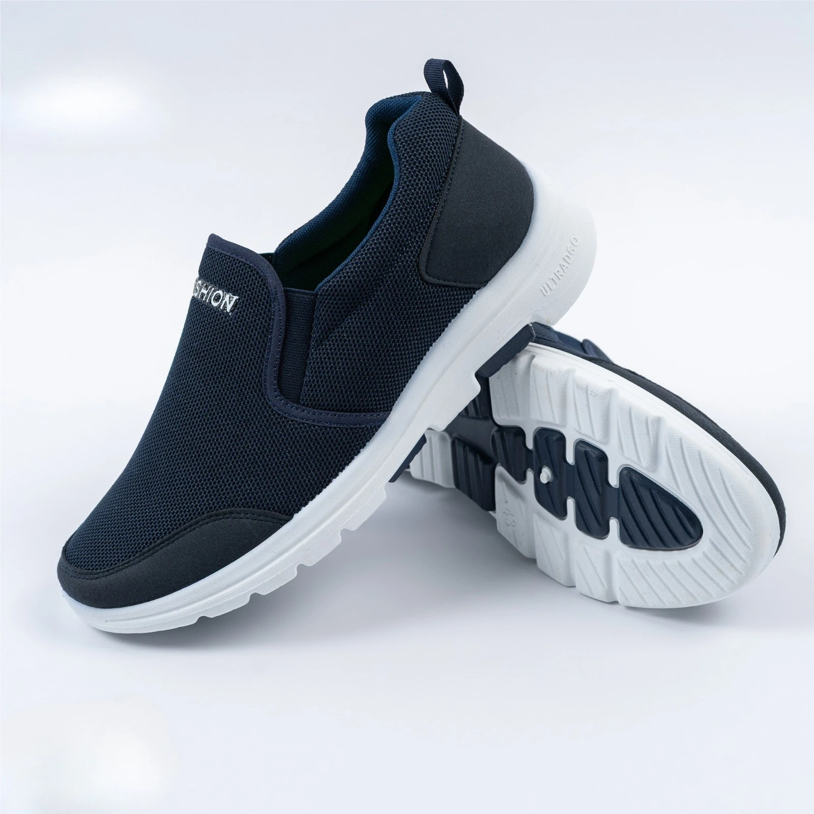 حذاء رجالي أنيق بتصميم انزلاقي عملي بدون أربطة، مصنوع من قماش شبكي قابل للتنفس مع نعل أبيض خفيف ومرن يمنحك راحة فائقة طوال اليوم. مثالي للمشي والاستخدام اليومي بأسلوب عصري بسيط.