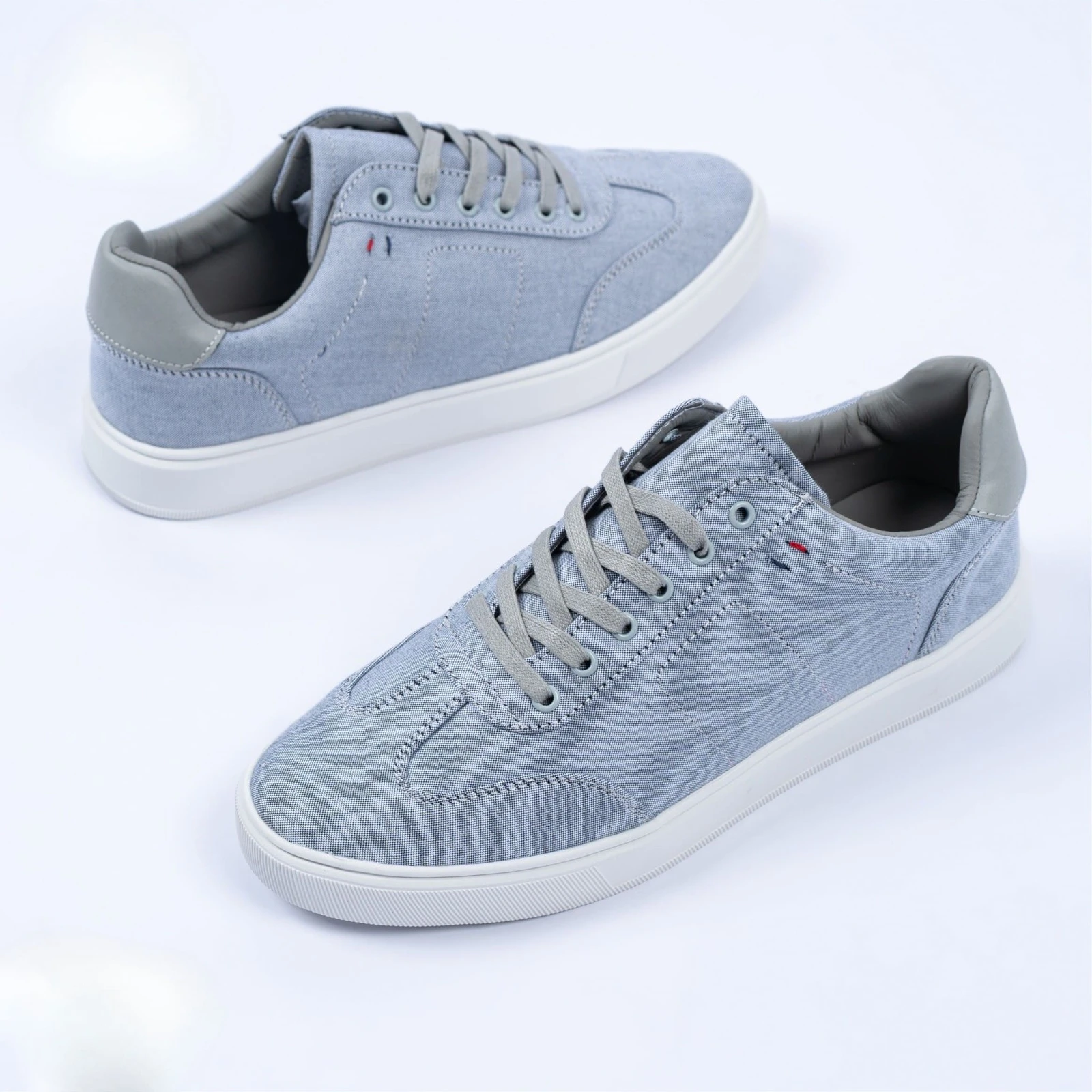 حذاء كاجوال أنيق بلون رمادي فاتح بتصميم عصري يناسب الإطلالات اليومية. مصنوع من خامة قماشية مريحة تسمح بتهوية القدم، مع نعل أبيض خفيف يوفر ثباتاً وراحة أثناء المشي. مثالي للجامعة أو الخروج اليومي بأسلوب بسيط وأنيق.