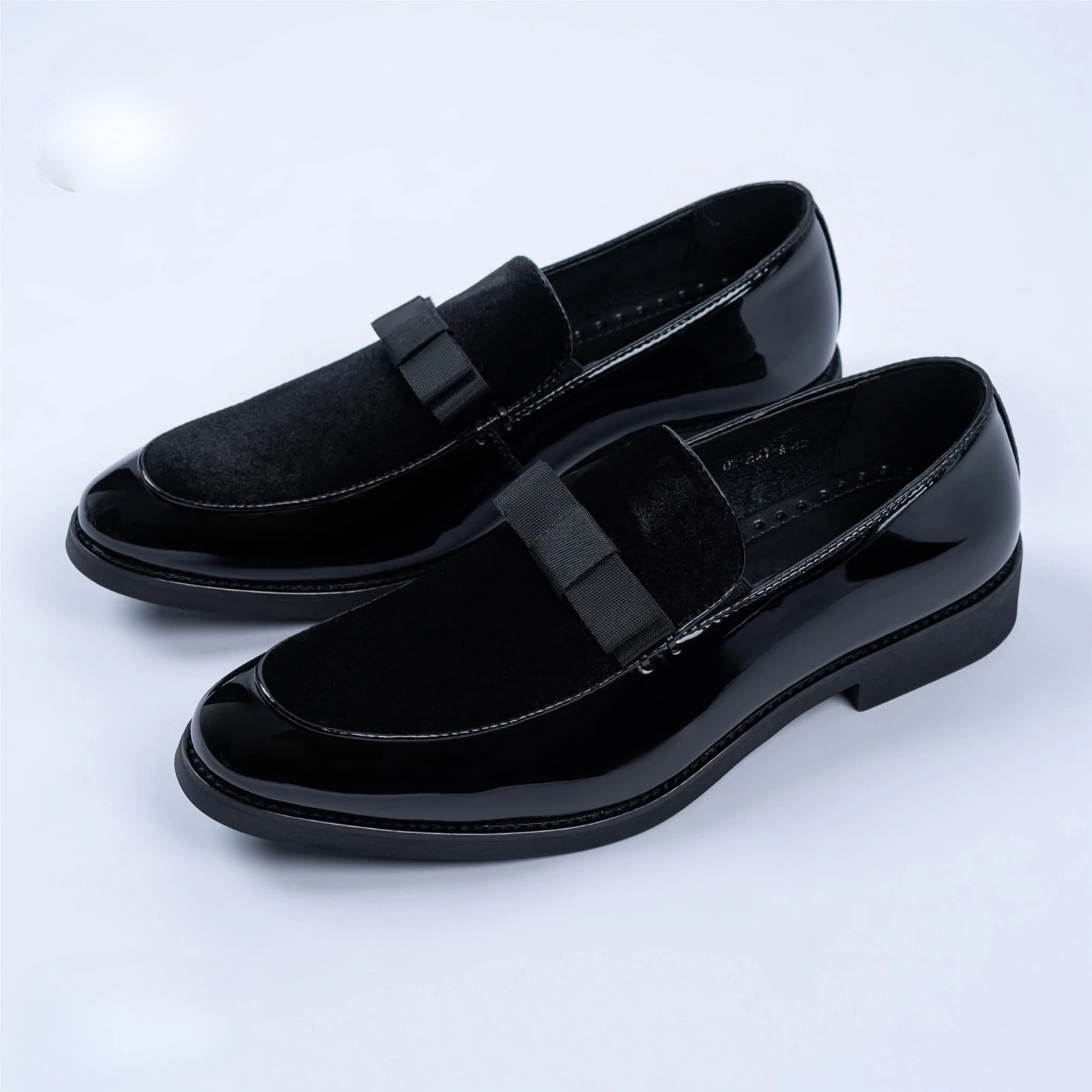 حذاء رجالي أنيق بتصميم لوفر كلاسيكي من الجلد اللامع مع لمسة مخملية فاخرة على الجزء العلوي. يتميز بقوس أمامي ناعم وشريط ديكوري أنيق، مما يجعله الخيار المثالي للمناسبات الرسمية والإطلالات الراقية. يوفر راحة عالية وثباتًا طوال اليوم مع لمسة فخامة عصرية.