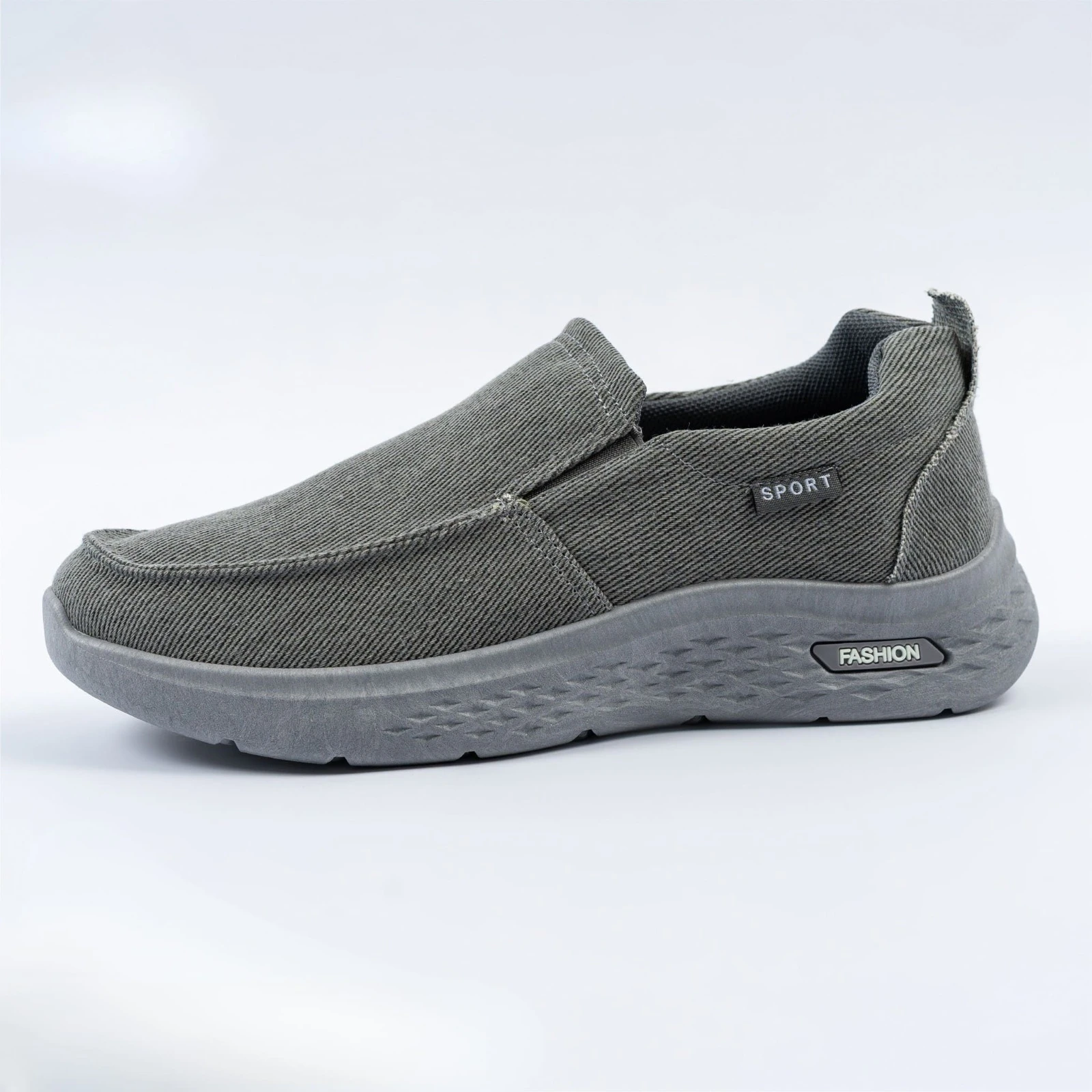 حذاء رجالي عملي بلون رمادي أنيق، مصنوع من قماش مريح وخفيف يسمح بتهوية القدم طوال اليوم. يتميز بتصميم انزلاقي سهل الارتداء ونعل مطاطي مرن يوفر ثباتاً وراحة أثناء المشي. مثالي للاستخدام اليومي والمشاوير السريعة بأسلوب عصري ومريح.