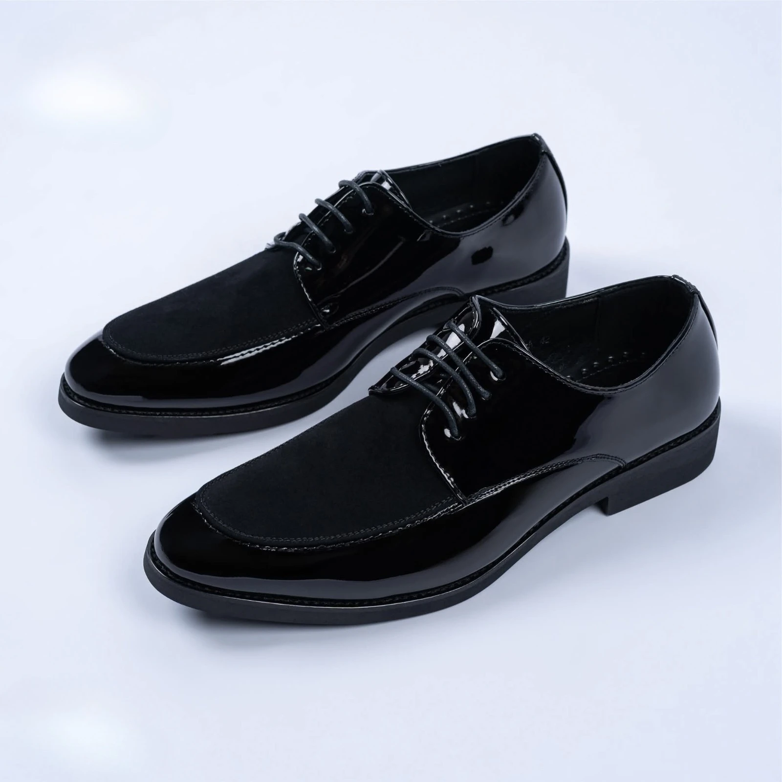 حذاء رجالي أنيق بتصميم كلاسيكي يجمع بين الجلد اللامع والمخمل الفاخر، مزود بأربطة أمامية تضيف لمسة من الرقي والاحترافية. مناسب للمناسبات الرسمية والإطلالات الراقية، ويوفر راحة وثباتًا مميزين طوال اليوم.