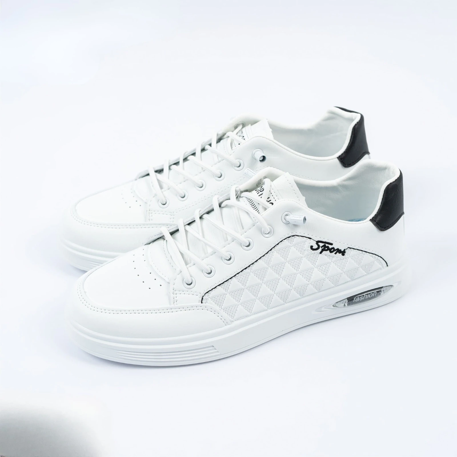 حذاء رجالي بتصميم عصري ولون أبيض أنيق، مصنوع من خامة مريحة وخفيفة التهوية مع كعب مبطن يوفر دعمًا إضافيًا للقدم. مناسب للاستخدام اليومي والمناسبات الكاجوال لإطلالة رياضية أنيقة.