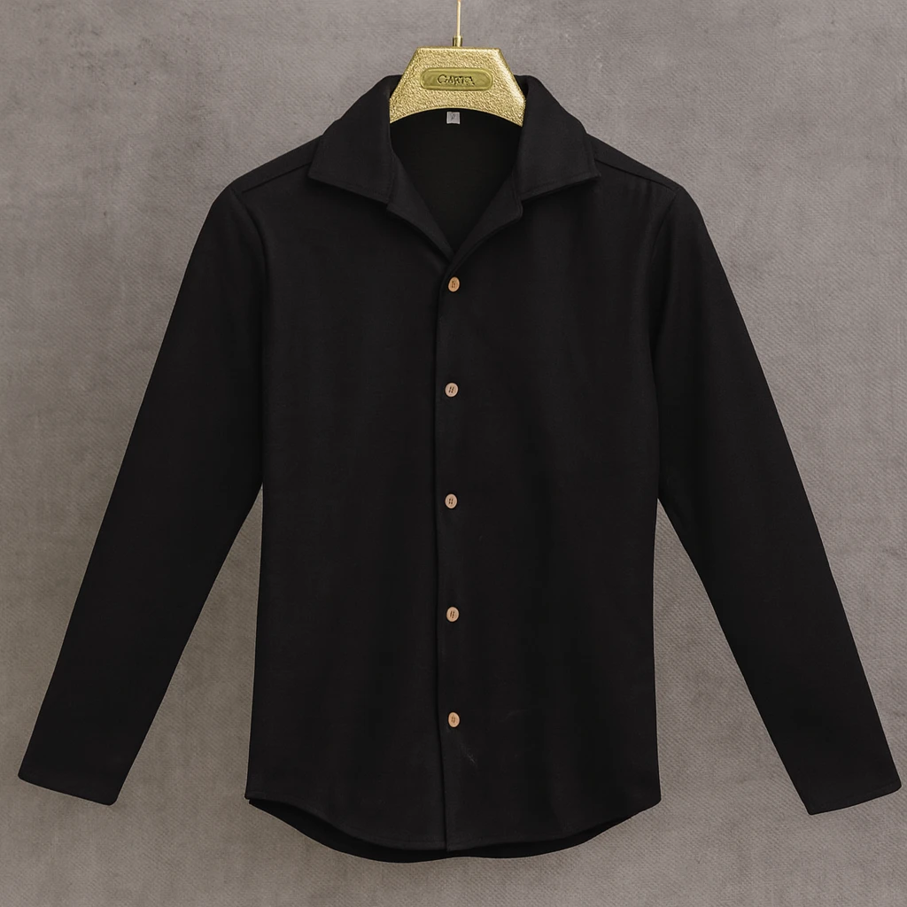 قميص جوخ رجالي أنيق باللون الأسود، يتميّز بخامة ناعمة ودافئة تمنحك راحة وأناقة فائقة في الأجواء الباردة. تصميم بسيط وعصري بأزرار أمامية يضفي لمسة راقية على مظهرك، مثالي للإطلالات اليومية والكاجوال، ويمكن تنسيقه بسهولة مع مختلف أنواع السراويل لإطلالة متكاملة.