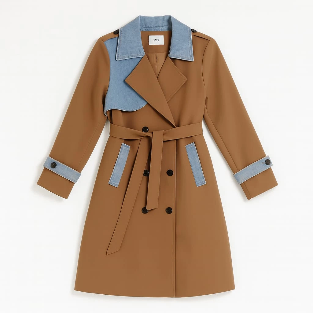 معطف أنيق بلون الكراميل الفخم مزوّد بتفاصيل جينز على الياقة والأكمام والجيوب، يمنحك مظهراً عصرياً ومميزاً. يتميز بقصّة مستقيمة وحزام خصر لإبراز القوام، مع أزرار أمامية مزدوجة تضيف لمسة كلاسيكية راقية. مصنوع من خامة عالية الجودة تمنح الدفء والأناقة في آنٍ واحد، مثالي لإطلالات الخريف والشتاء.
