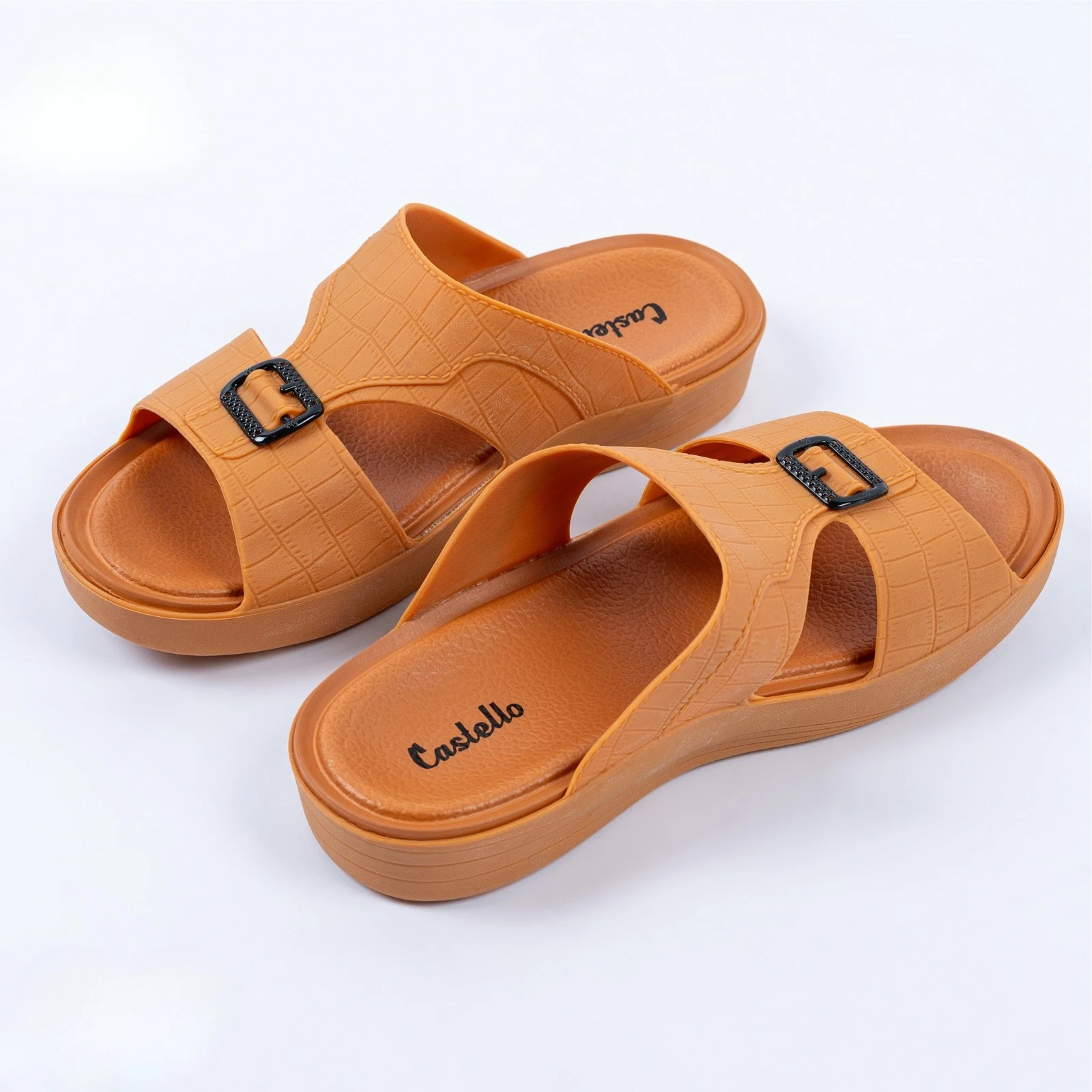 صندل رجالي أنيق باللون الجملي، مصنوع من خامة مرنة عالية الجودة تمنح الراحة والثبات أثناء المشي. يتميز بتصميم عصري بنقشة فاخرة ومشبك أمامي أنيق، مع نعل مريح مضاد للانزلاق. مثالي للاستخدام اليومي في المنزل أو الخارج.