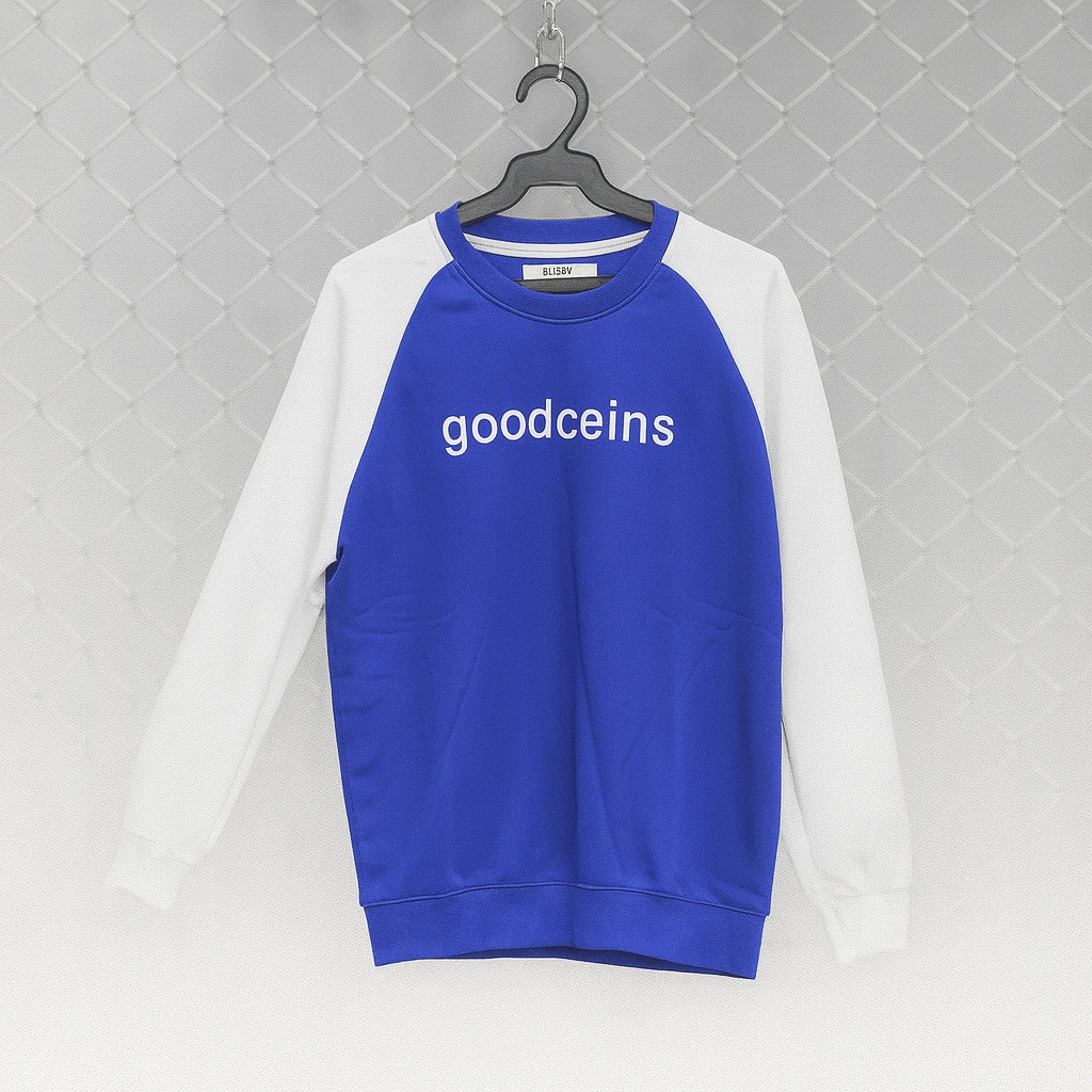 سويت شيرت رجالي عصري باللونين الأزرق والأبيض، مصنوع من قماش قطني ناعم عالي الجودة يوفر دفئًا وراحة مثالية طوال اليوم. يتميّز بتصميم شبابي مطبوع بكلمة "goodceins" على الصدر، مع أكمام بلون متباين تضيف لمسة أنيقة وعصرية. مثالي للإطلالات اليومية والكاجوال.