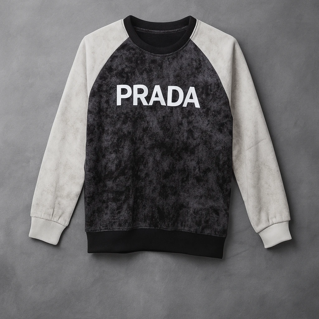 سويت شيرت سكوباليغرا PRADA بتصميم أنيق بلون أسود مع أكمام رمادية فاتحة، مصنوع من خامة ناعمة تمنحك راحة وأناقة عصرية تناسب الإطلالات اليومية.