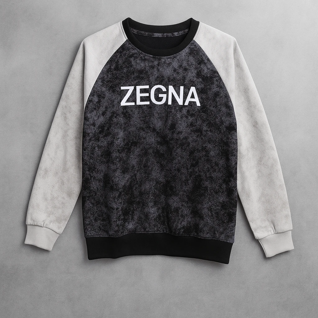 سويت شيرت سكوباليغرا ZEGNA بتصميم أنيق بلون أسود مع أكمام رمادية فاتحة، مصنوع من خامة ناعمة ودافئة تمنحك راحة وأناقة عصرية تناسب الإطلالات اليومية والكاجوال.