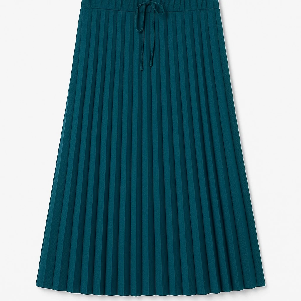 تنورة نسائية بليسيه أنيقة بلون أزرق تركوازي، بتصميم كسرات ناعمة تمنحك إطلالة راقية وانسيابية جميلة. مزودة بخصر مطاطي مع ربطة أنيقة لراحة مثالية وتثبيت مريح، مناسبة للإطلالات اليومية أو المناسبات العصرية.