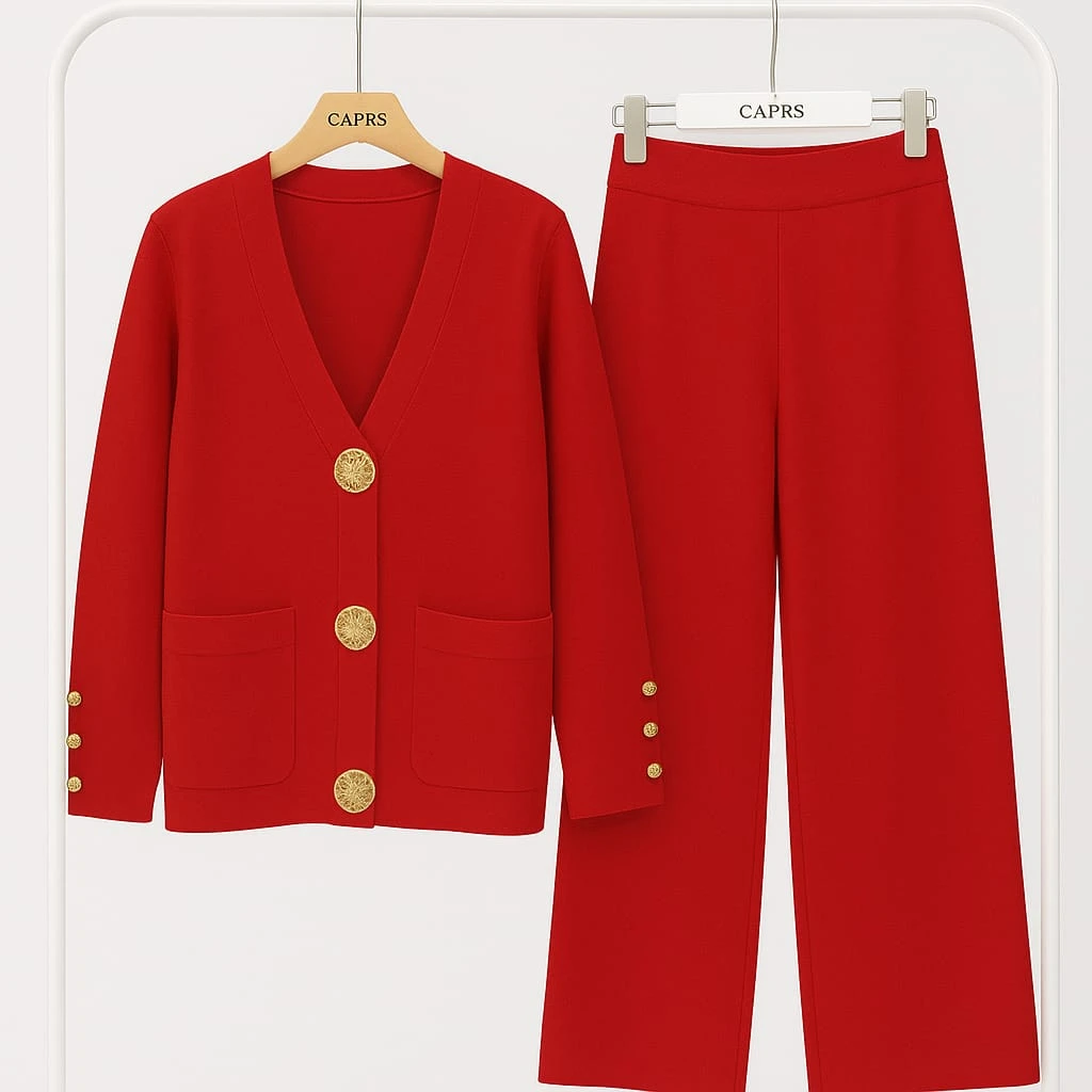 ترينغ نسائي فاخر من الصوف بنسبة ٩٠٪ باللون الأحمر الجذاب، يجمع بين الأناقة والدفء في تصميم عصري مميز. يأتي الجاكيت بقصّة أنيقة مع أزرار ذهبية فخمة تضيف لمسة راقية، وجيبين أماميين لأسلوب عملي أنثوي. أما البنطال، فقُصّ بقصة مستقيمة تمنح إطلالة متوازنة ومريحة.